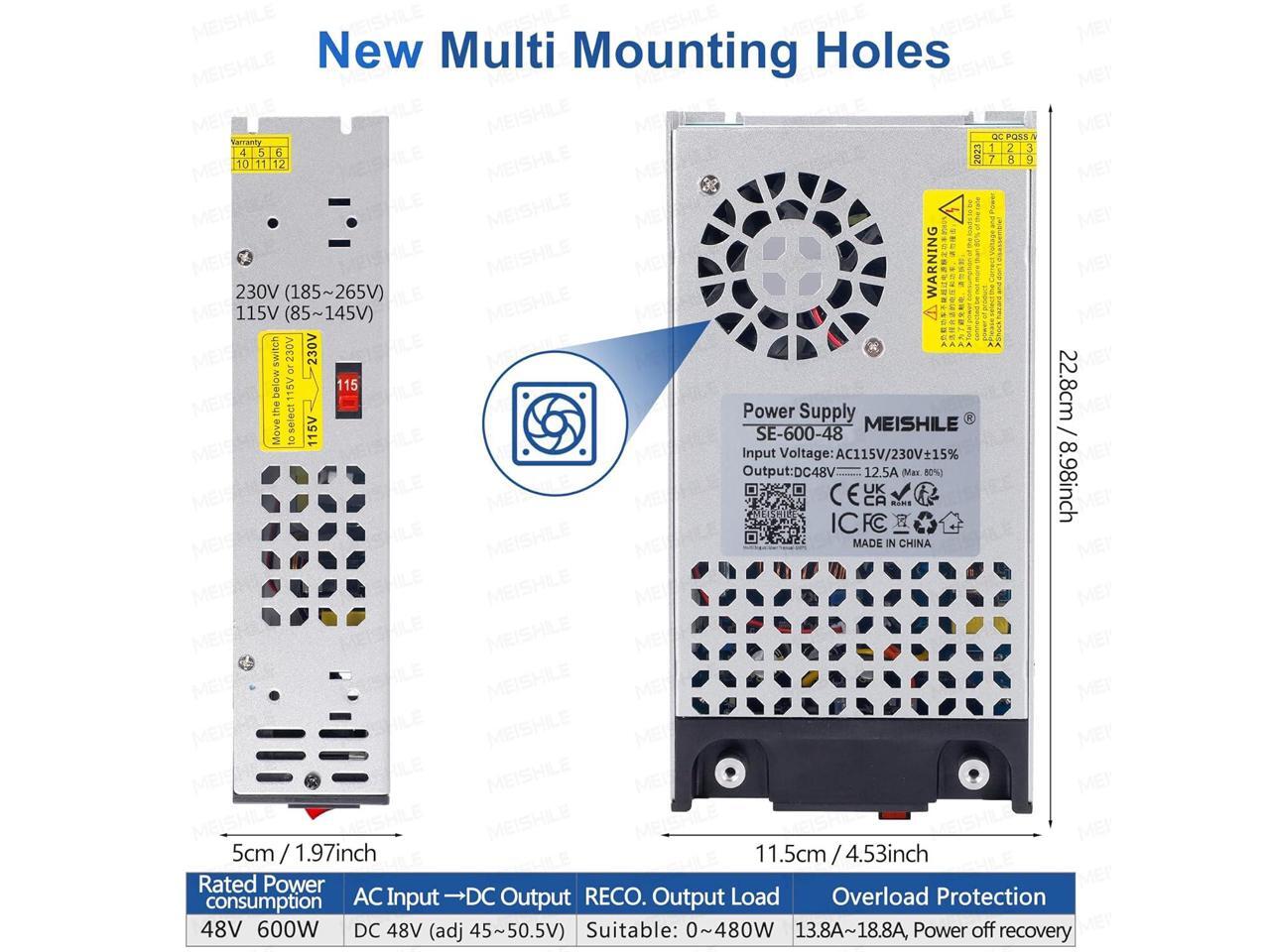 MEISHILE 48V 12.5A 600W Switching Power Supply Universal AC to DC Transformer Converter for LED Driver Strip Light Lamp, Machine, 120V 110V to 48Volt 3A 4A 5A 6A 8A 10Amp