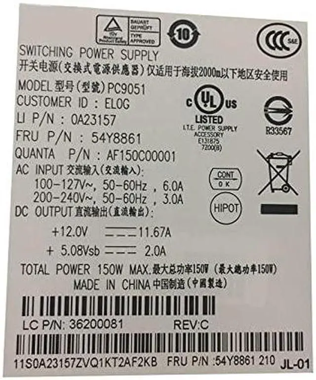 • PSU For M9000z M9080Z M9060Z M7191Z M9090Z S600 M70Z 150W Power Supply 54Y8861 PC9051 PS-2151-01 DPS-150QB A