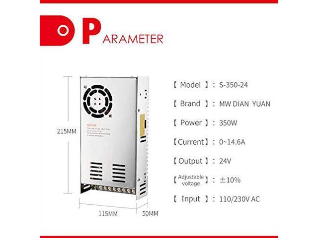 - Output: DC 24V/14.6A, 350W, three sets of output channels. LED indicator for power on.