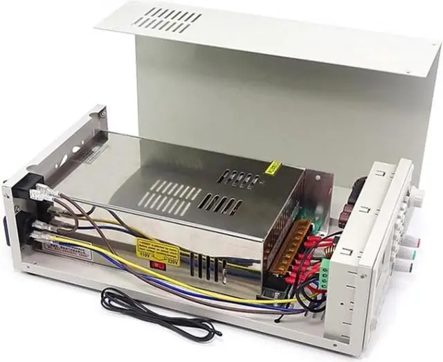 Uselongbrown cable to connect therockerswitch and the live wire (L) of the switch power supply; then useshortbrown cable to connect therockerswitch and the live wire (L) of the AC power socket; Use the blue cable to connect the neutral wire (N) ofAC power socket and the neutral wire (N) of switch power supply; Use a yellow-green two-colorcableto connect the ground wire (E) ofAC power socket and the ground wire () of switch power supply.Use two red cables to connect the IN+ of the green terminal and the electrodes (+V), and use two black cables to connect the (IN-) of the terminals and negative electrodes (). Install the temperature sensor board to the back panel.
