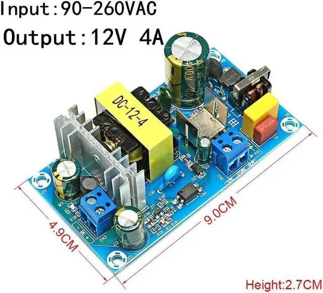 90-260 VAC to DC 12V 1A 2A 4A 6A 8A 13A 17A Switching Power Supply Board high Power Industrial Bare Board Module AC-DC (Color : 12V 4A, Size : 100-240V)