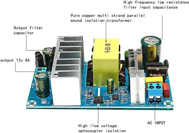 • 90-260 VAC To DC 12V 1A 2A 4A 6A 8A 13A 17A Switching power supply board high power industrial bare board module AC-DC