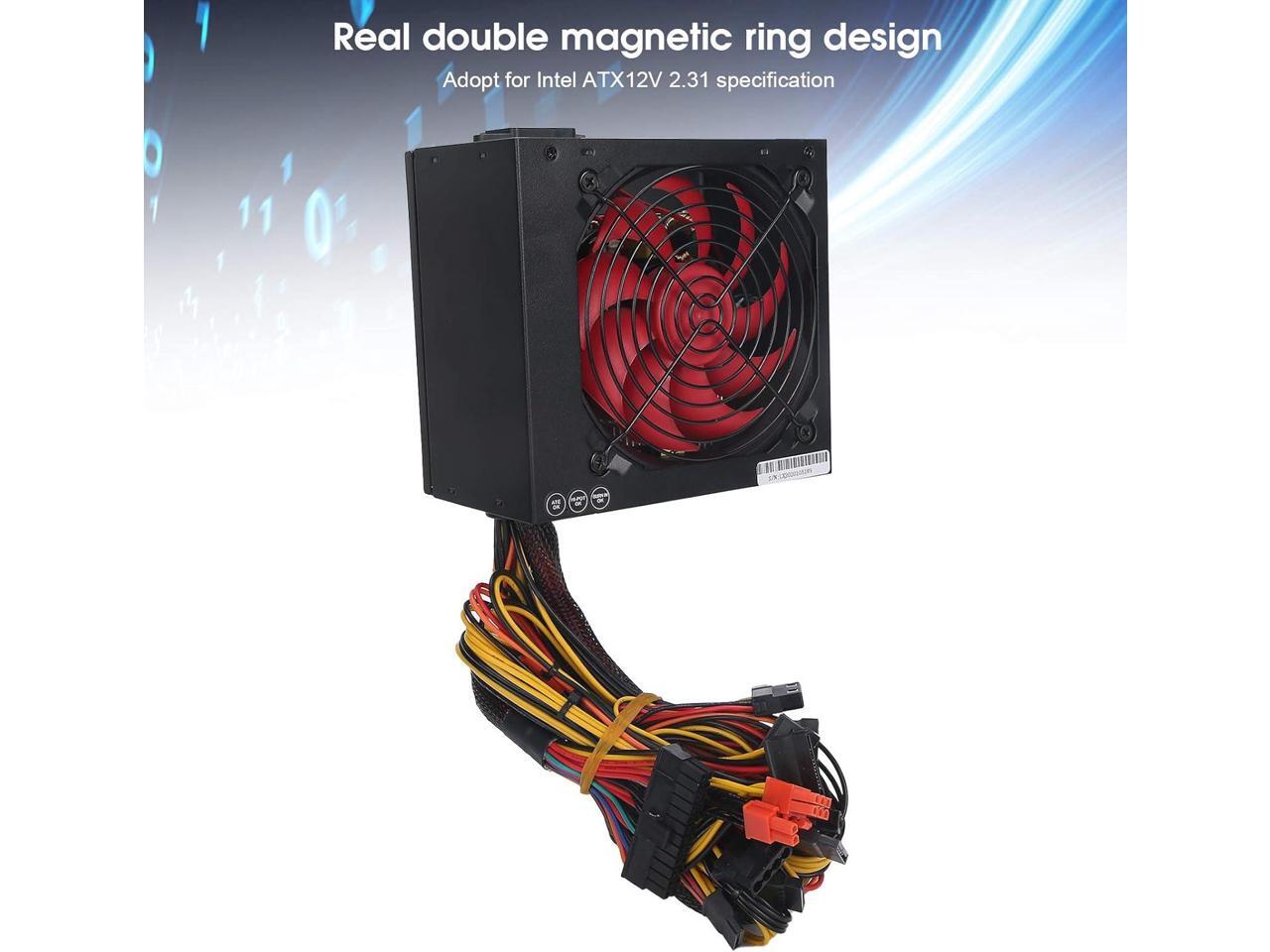 Vbestlife PC Power Supply, 600W Desktop Computer Parts, Computer Power, Adjustable ATX 24PIN red Fan, Manual 115 / 230V Switching Voltage, Accessories for PC(red)