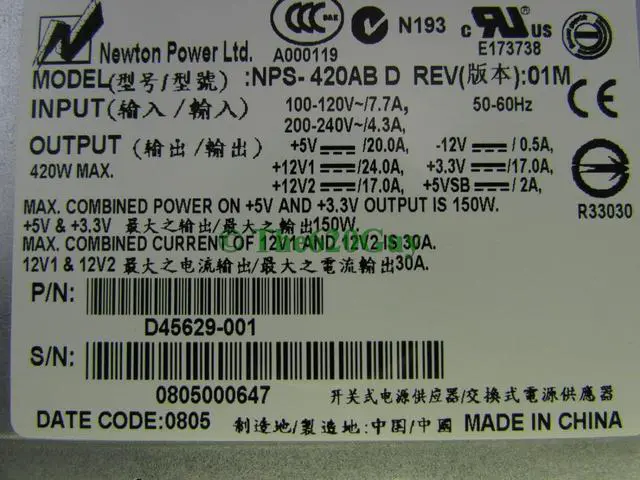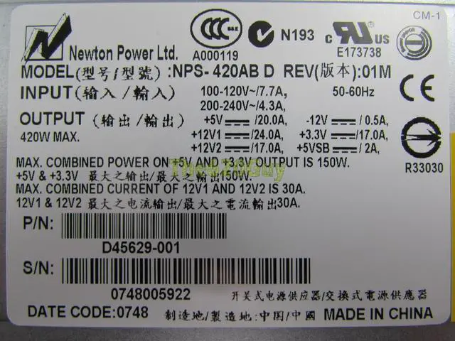 Newton Power NPS-420AB D 420W 24Pin 8Pin 12V Server ATX Power Supply D45629-001