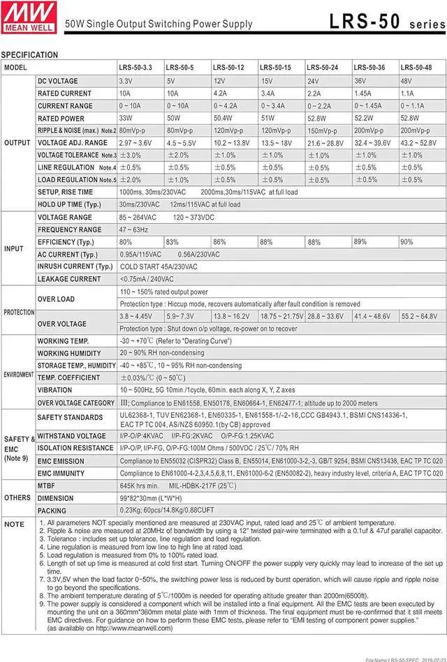 Product Name:MEANWELL Single LRS-50-12 dc output 12V computer power supply