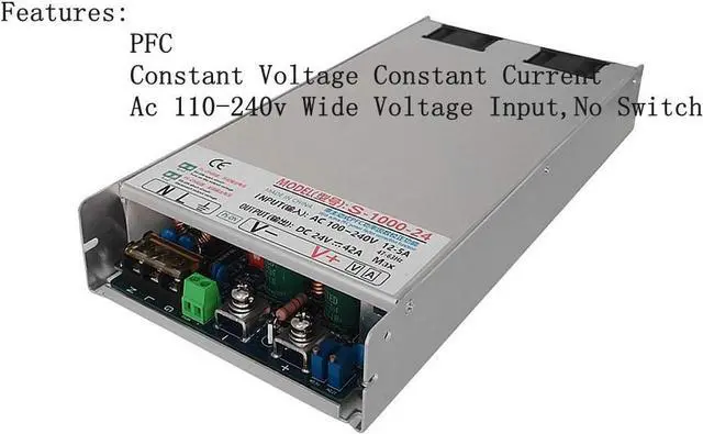 -Input voltage:AC 100-240V(wide voltage automatic adaptation, no switching); -Power factor PF value 0.99/110V (100% in full load) PF value 0.98/220V (100% in full load); -Output overload protection:Overload protection ways for constant current limit flow pattern lock output current value does not rise, the output voltage with load increasing; -High temperature protection:PWM transistor heat sink temperature of 85 + / - 5% when shut off the output voltage, temperature to 75 + 5% for automatic recovery; -Output short circuit protection:Since the xs, short circuit back output; -The output over voltage protection:Overvoltage point 115% of the nominal voltage, over voltage protection lock, after will not automatically restore, need again when the power is cut off electricity; -Working temperature:25 degrees below zero - 45 degrees centigrade, overtemperature need to down load; -The cooling way:Automatic temperature control speed fan (blowing); -Weight:3 LBS; Size: 10.5 X 5.1 X 1.57 INCH(L*W*H) One year warrant. -High PF value:With active PFC power because, several correction PF value above 0.9 to Et utilization rate is high. -Wide voltage input:Ac 100-240v wide voltage input, automatic adaptation no 110/220 switch. -Constant pressure constant current Both can work in the state of constant pressure and can work in the state of constant current voltage current adjust alone.
