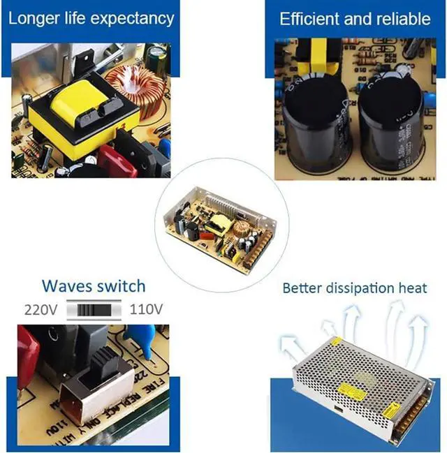 3.Regulated voltage & current output. This is a perfect choice to use as a LED Driver for all type of LED lighting 3.without flickering light & ensue the life span of your LED.