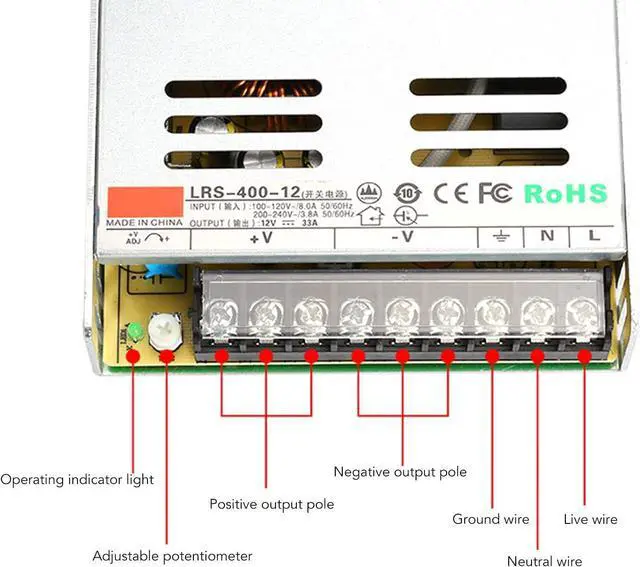 4. Protection Function: The wiring port of switching power supply is covered with pure copper transformer, which can prevent electric shock, ensure and reliable performance.