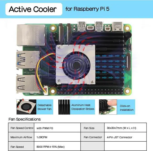 Packing List: 1 x X1202 5V UPS Shield with Screws Pack,1 x H505 active cooler for Raspberry Pi 5; Not include Raspberry Pi 5, batteries or power adapter