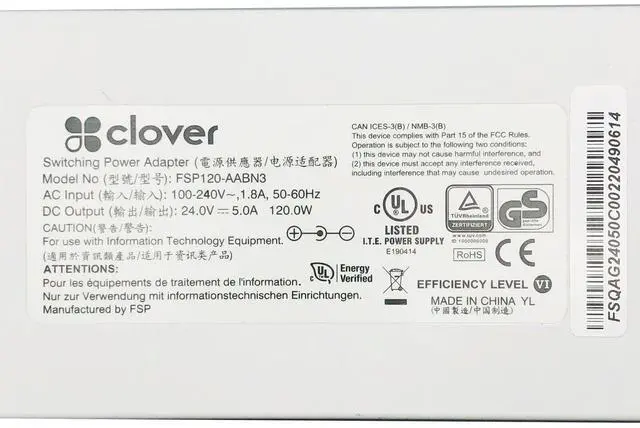 Genuine Clover FSP120-AABN2 Switching Power Supply Adapter 24V 5A 120W w/PC