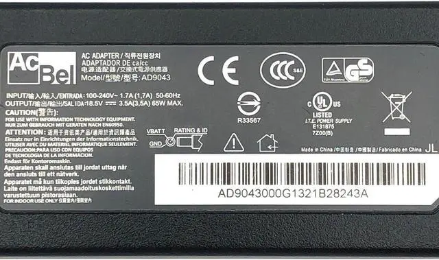 Original AcBel AD9043 AC Adapter 18.5V 3.5A 65W Power Supply 7.4x5mm+Pin w/Cord