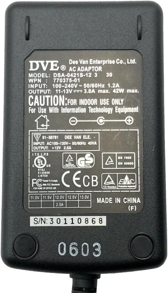 Genuine DVE DSA-0421S-12 3 30 AC Adapter 11-13V 3.8A Power Supply W/Cord OEM