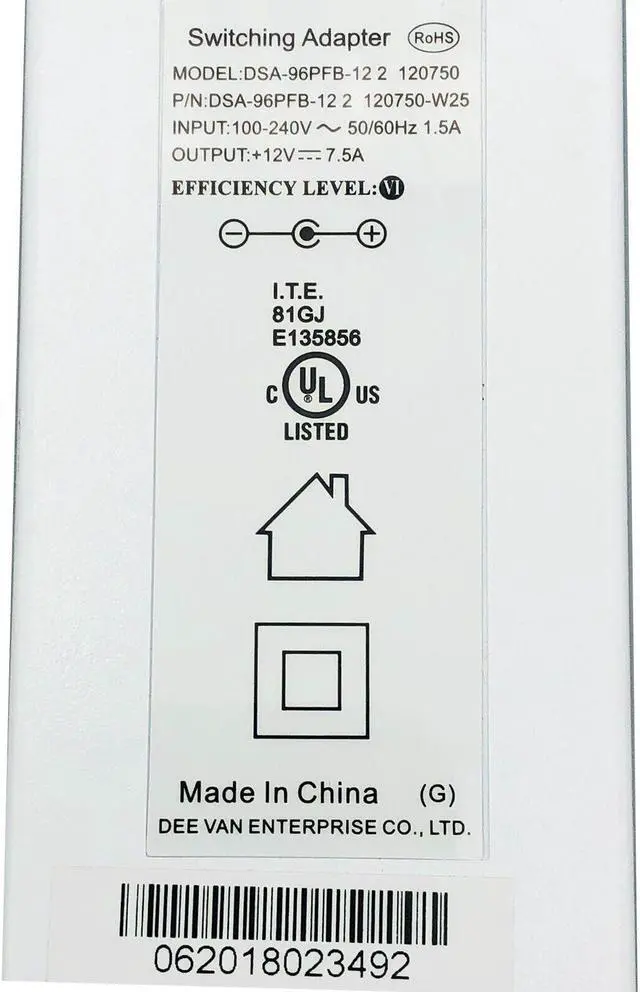 Genuine DVE DSA-96PFB-12 2 120750 Switching Power Adapter 12V 7.5A 90W w/PC