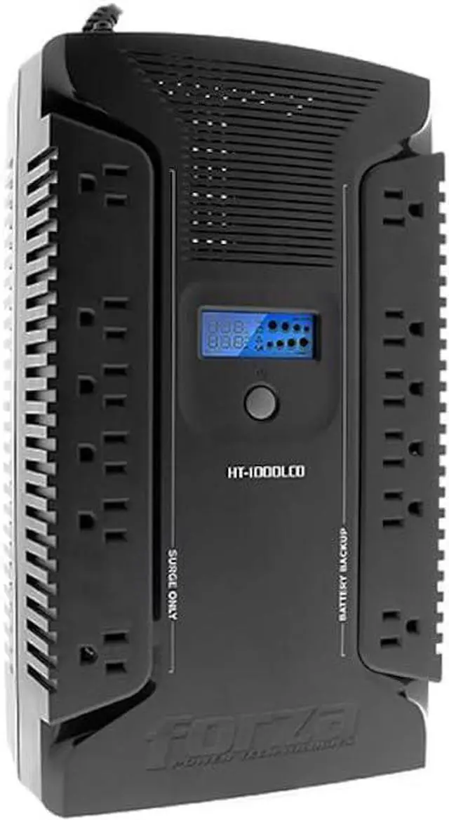 FORZA UPS CON TOPOLOGÍA INTERACTIVA DE LÍNEA: PROTECCIÓN PARA SUS DISPOSITIVOS Y DATOS - Este UPS rentable ofrece una energía de CA limpia y estable, una pantalla LCD, 12 salidas, 2 puertos USB, protección de datos y más. Tiene 1000VA/600W y una onda sinusoidal simulada. Tiene un diseño elegante, una batería fácil de cambiar, material ignífugo y 3 años de garantía.