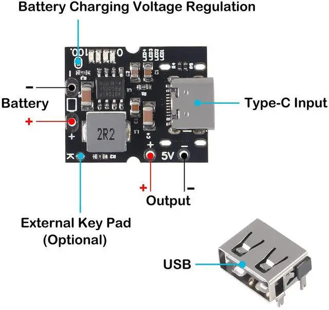 • It supports the external key, which is connected to the K point and the output negative pole. Short press to turn on the power display and turn on the 5V output. Two consecutive short presses will turn off the power display and turn off the 5V output.