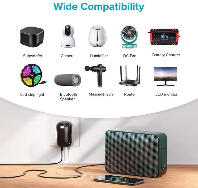 Replacement Power Cord for Various Small Appliances - 6V to 24V power supply for Household Electronics, LED Strip lights, Tablets, Routers, Speakers, LED Strip Lights, CCTV camera system, floor lamp, and so on.