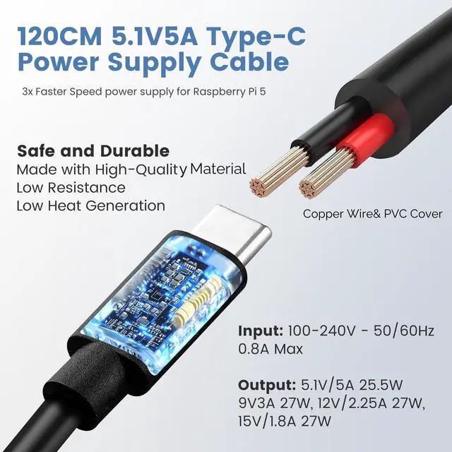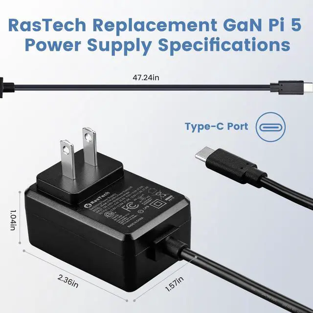 Good Compatibility: The GaN 27W PD USB-C Power Supply is also capable of delivering [email protected] ,3A @ 9V, 2.25A @ 12V, and 1.8A @ 15V to PD-compatible products, making it a good cost-effective power supply for many general-purpose.Compatible with Raspberry Pi 5 16GB/8GB/4GB/2GB