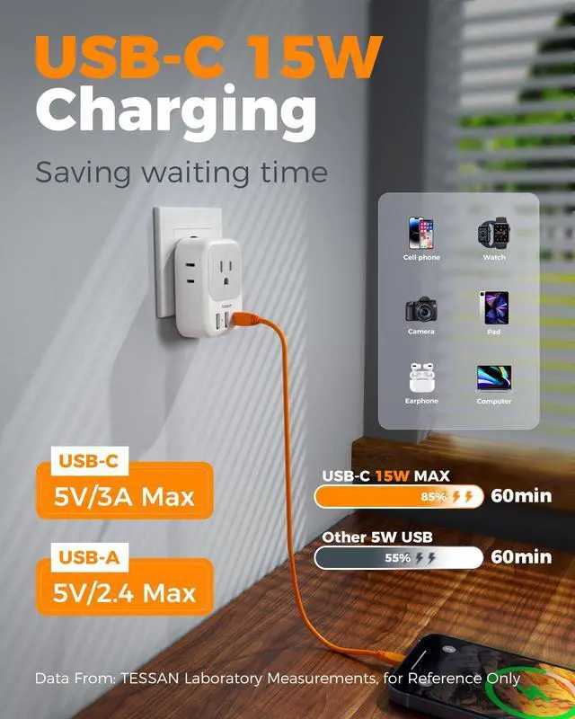 Equipped with 1 USB C port (15W Max) and 2 USB A ports (12W Max per port), this France adapter plug charges your phone, earphones and other devices, reducing your waiting time and making travel easier; Bringing this US to Germany plug adapter to airport, hotel, dorm room or office is a convenient choice