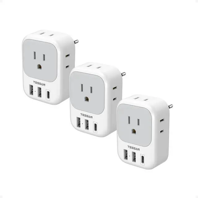 It measures 2.2 × 3.1 × 2.5 inches, so it's compact. You can easily put it in small spaces like handbags or backpack compartments. This international charger adapter is also allowed on cruise ships, meeting your power needs while traveling.