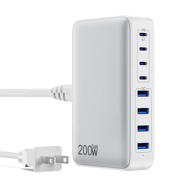 200W USB C Charger with 8 Port Fast Charging Station 65W Laptop Power Adapter