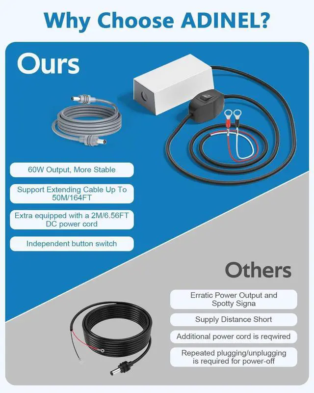 The 2meter/6.56ft DC power cable. Plug-and-play,can be directly connected to the Starlink Mini 12V adapter to power your Starlink Mini dish.