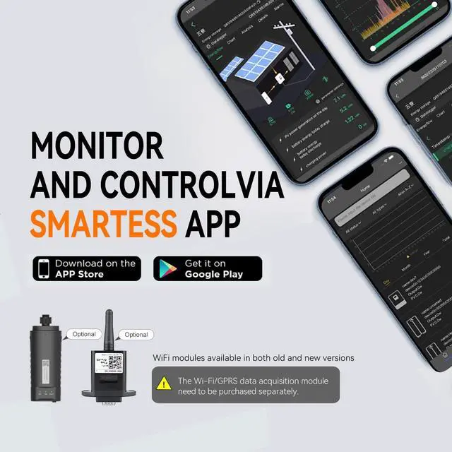 Note that the PN code for WIFI-HF usually starts with Q00, QA520, QA521, etc. The APP used for this WiFi module is SmartESS. A WiFi module with a PN code starting with E6 was released later, which uses SmartValue instead of SmartESS. If used incorrectly, it may cause the WiFi module to not function properly. Please distinguish and check if the APP is used correctly when encountering WiFi issues with WIFI-HF