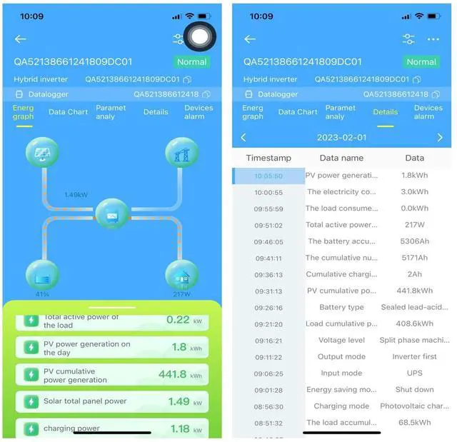 The WiFi module uploads cloud data not in real-time, but every five minutes. Therefore, the data observed on the mobile app is likely to be different from the data displayed on the all-in-one device. It is important to note that