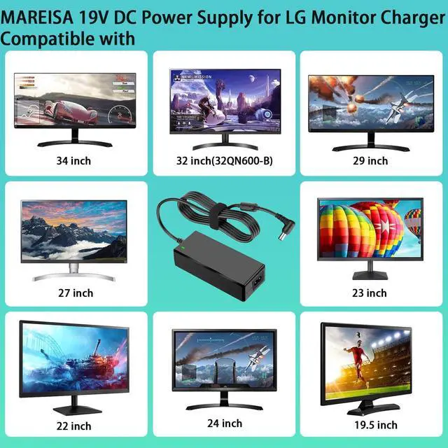 | Compatible with: | 19V 3.42A Power Adapter fit for LG Electronics 34" 32" 29" 27" 24" 23" 22" 20" 19" LED LCD Ultrawide Monitor and TV's Models Listed Below. |