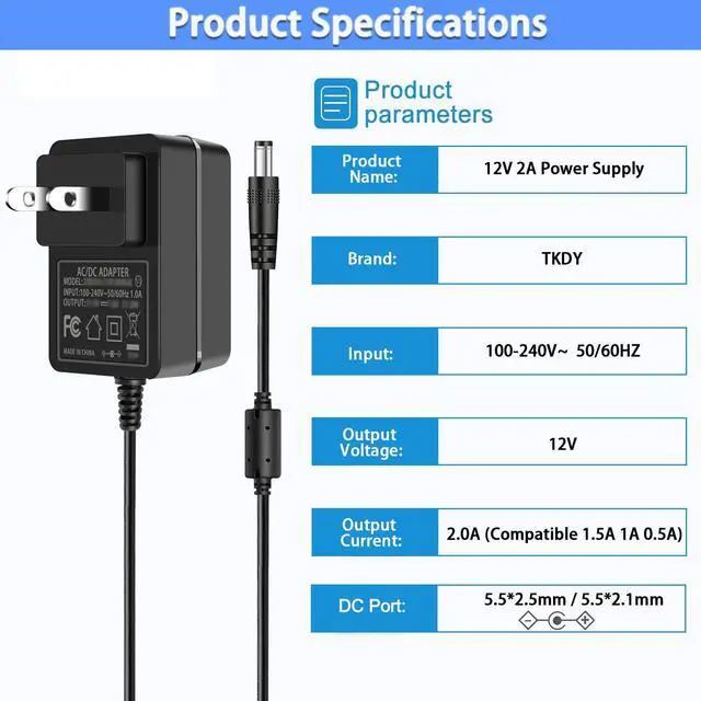 - 4. If you have a power supply for reference, their output voltage, plug size, dc port polarity should be the same .If our TKDY's power adapter current is equal to or higher than original one’s, then our power adapter will work with your device.
