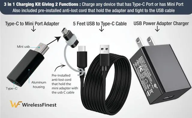 3 in 1 Kit : you will get a USB power adapter that you can convenient use it for other application, a usb C cable that will work with any usb c type device, and usb c to mini plug adapter to charge or data transfer to the calculator that pre-installed on the anti-lost cord to the usb cable so it will be alway available when need.