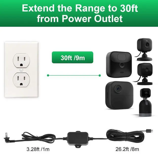 UYODM 30FT/9m Power Adapter for Blink Mini 2, Blink Outdoor 4 (4th Gen) Blink XT3/XT2/XT/Blink mini