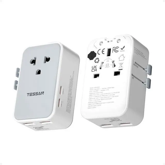 5 IN 1 Universal Travel Adapter accepts Type A/B/C/E/F plugs and works in over 150 countries including USA, UK, EU, Australia, and Asia (Type C/G/A/I).