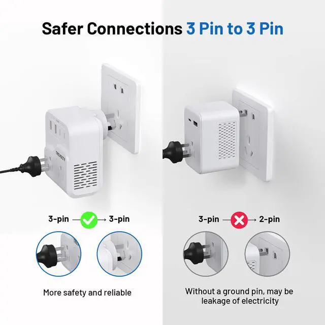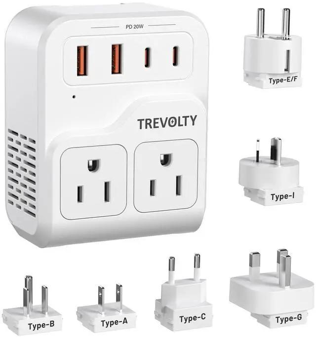 Global Compatibility for 230+ Countries - Equipped with Type A/B/C/E/F/G/I plugs for universal use. Type A/B: US, Canada, Mexico, Bahamas, Barbados, Bermuda, Belize. Type C: France, Germany, Italy, Spain, Portugal. Type E/F: Germany, France, Belgium, Poland, Netherlands, Spain. Type G: UK, Ireland, Singapore, Hong Kong, Dubai. Type I: Australia, China, Argentina, New Zealand, Fiji.