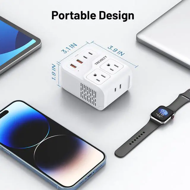 Compact Travel Design Slim, lightweight (6.3 × 3.1 × 1.3 in) and easy to pack in carry-ons, backpacks, or luggage. Silent, fan-free operation ensures quiet charging in hotels, shared rooms, or vacation rentals. Compatible with most electronics, chargers, smartphones, and tablets.