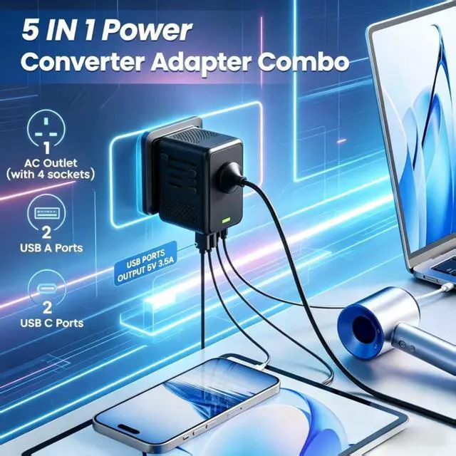 Can this power converter charge 5 devices simultaneously?