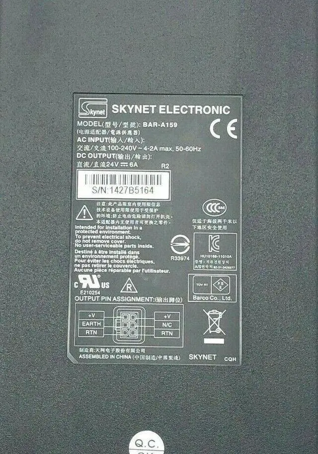 Genuine Skynet BAR-A159 AC/DC Power Supply Adapter 25V 6A 144W OEM 6-Pin w/PC