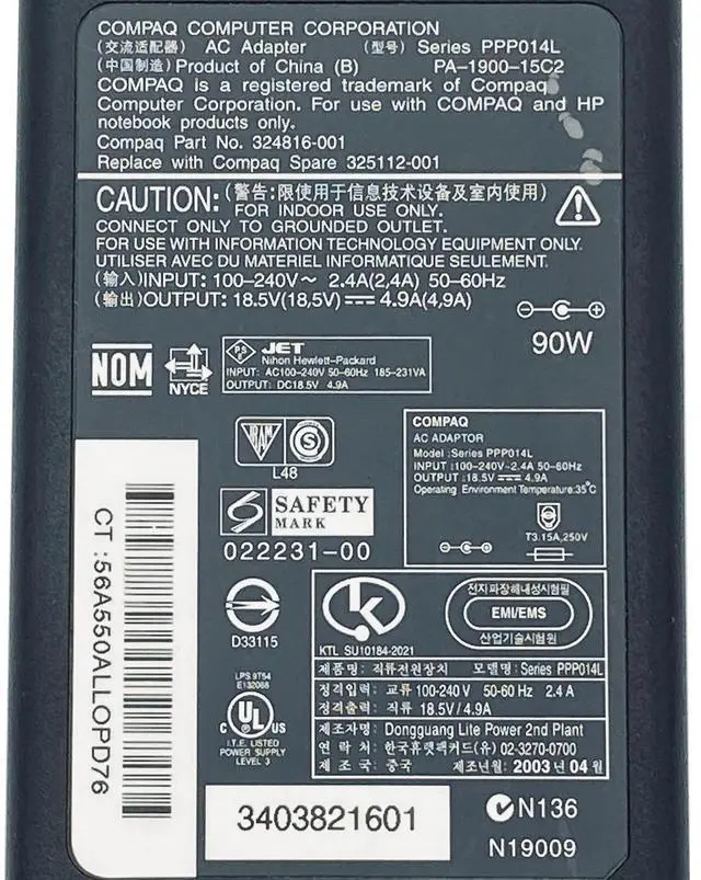 Compatible with HP Part Numbers: PPP012S, 308745-001, 308745-002, 309241-001, 310925-001, 324815-001, 324815-002, 324815-002, 324815-003, 324816-001, 324816-002, 324816-003, 325112-001, 325112-011, 325112-021, 325112-031, 325112-061, 325112-111, 325112-291, 325112-AA1, 325112-AR1, 325112-BB1, DHF1454a, F1454a, F1718a, F1781a, F4600-60901, F4600a, F4813-60901, F4813A, F4813A#ABA, F4814a, F5104A, HP-0L091B132, HP-0L093B132, HP-OL090B131, HP-OL091B132, HP-OL093B132, PA-1600-07, PA-1600-07H, PA-1900-05C2, PPP012H, PPP012HA, PPP012L, PPP014H.