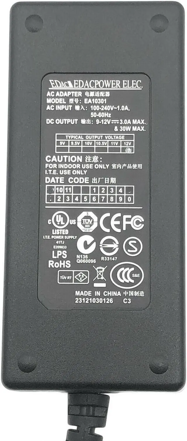 Original EdacPower EA10301 AC/DC Adapter Power Supply 9V-12V 3A w/PC