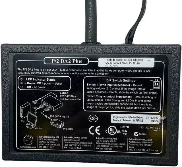 OEM Extron P/2 DA2 Plus Distribution Amplifier VGA XGA QXGA with Power Supply
