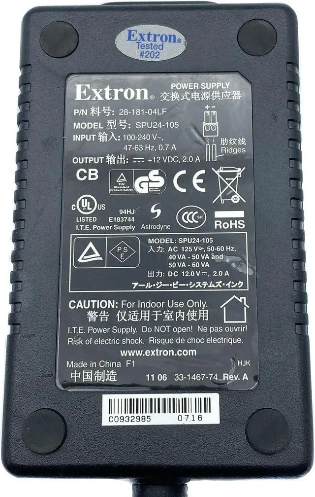 Genuine Extron SPU24-105 28-181-04LF Power Supply 12VDC 2.0A w/Power Cord OEM