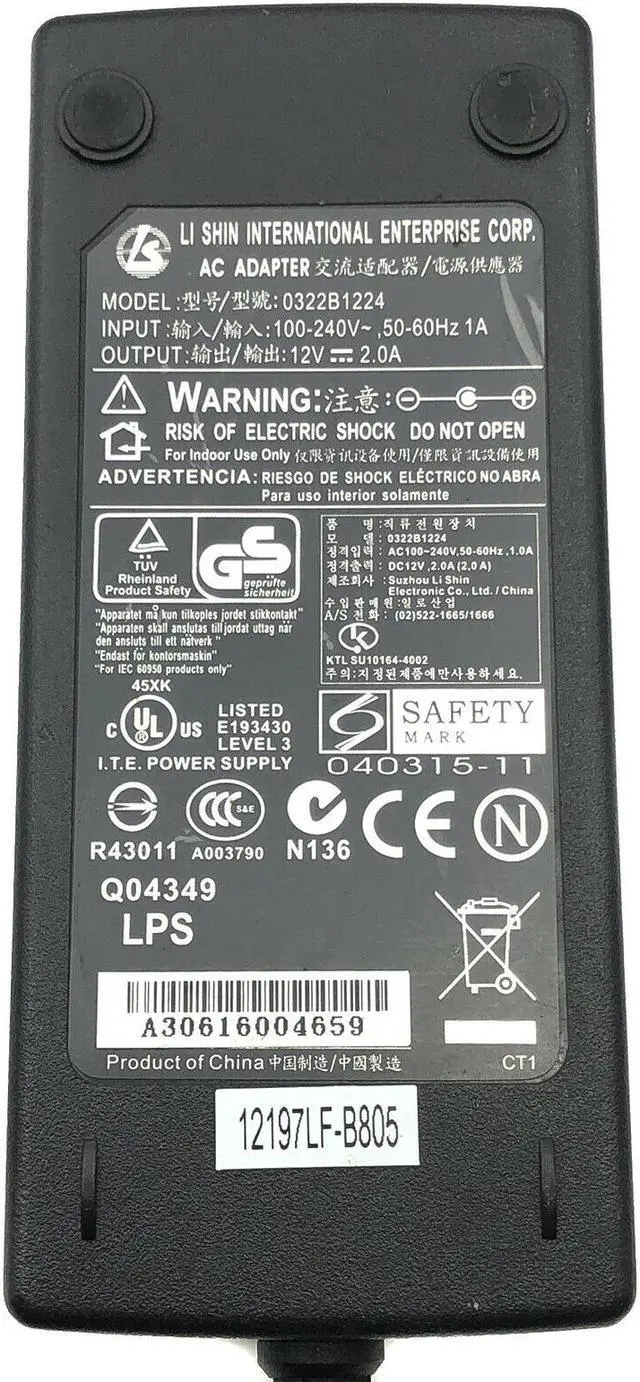 Genuine Li Shin 0322B1224 AC Power Adapter 12V 2A Charger 24W OEM With Cord