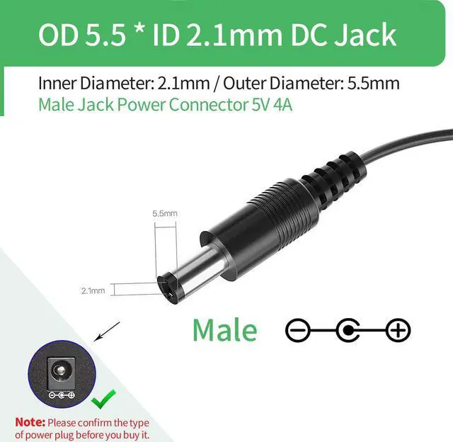 DC Connector Size: 5.5mm x 2.1mm