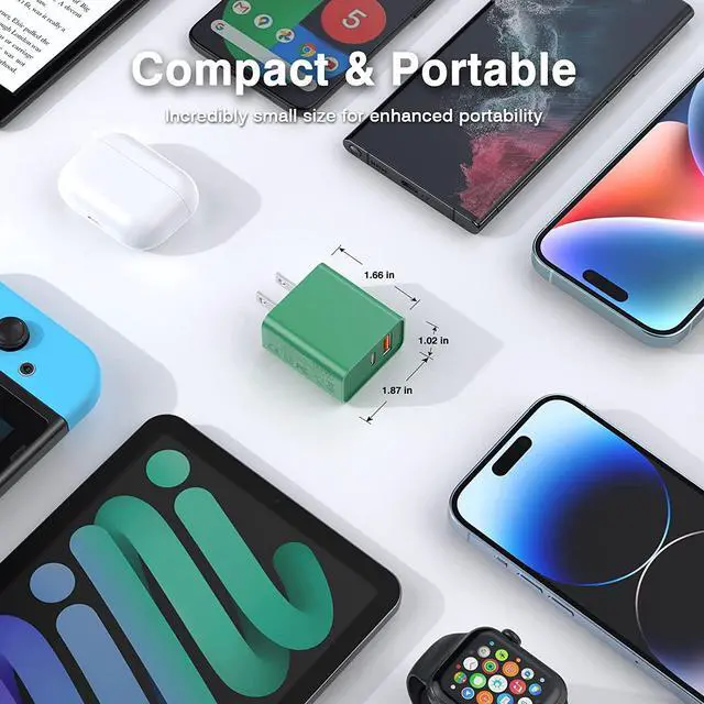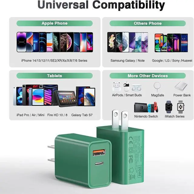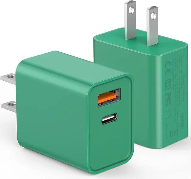 2Pack 20W Type C Charger, Dual Port USB C Wall Plug 20W PD & QC3.0 USB A Fast Charging Block for iPhone, Samsung Galaxy, Google Pixel, Motorola, Oneplus Kindle Cargador Cube Brick Box, Green
