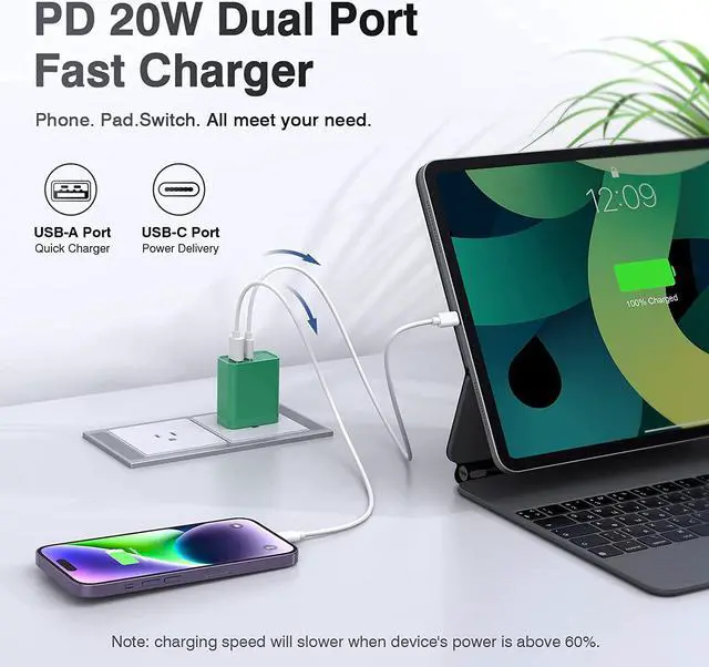High-Speed Charging: The USB-C port supports a maximum power output of 20W. Dual-port design with USB-C and USB-Acharge two devices at the same time to minimize waiting time and frees you from messy chargers with various interfaces
