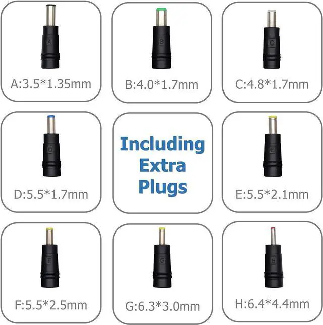 Connecter(Tips) Size : 5.5mm x 2.1mm ,Wire Length:Approx. 3.6Ft, with line controller