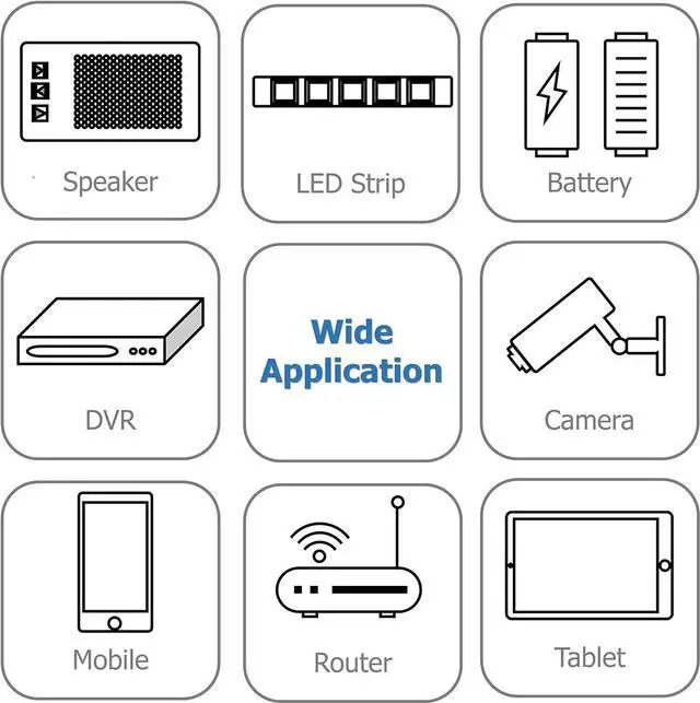 The Charger Applicable With:Router,humidifier, air cleaner, electronic refrigerator, LCD monitor, LED lighting, communications equipment, audio and video products, security, computer case and the other digital products which requre 5.5*2.1 mm plug