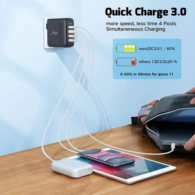 Multi-port USB ChargerAmlink 40w 4-port usb wall charger with 1 USB-C port and 3 USB-A ports. Allows users to quickly charge phones, tablets, laptops and headphones at the same time, saving you time. It's also a great space saver that doesn't take up multiple outlet ports. It is the best choice for your USB charger.