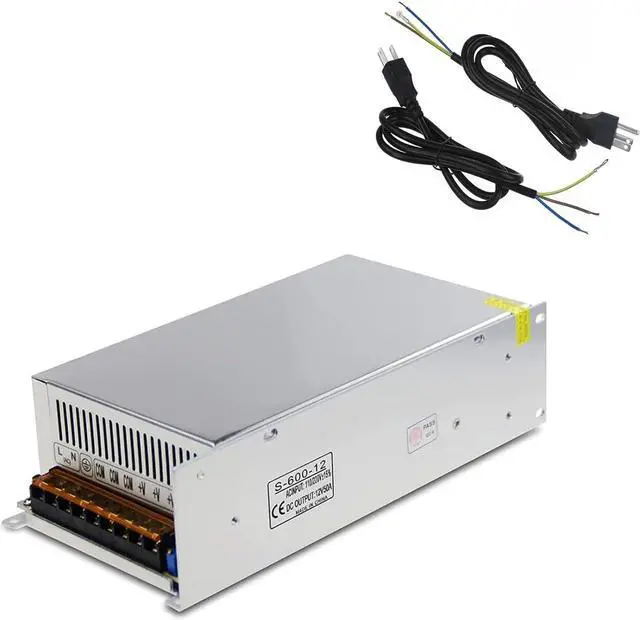 ALITOVE 12V Power Supply 50A 600W Switch Mode Power Supply Convert 110V / 220V AC to DC 12 Volt 50 Amp with 2-Pack 3.8ft 18 AWG 3 Prong 250V 10A Universal AC Power Supply Cable