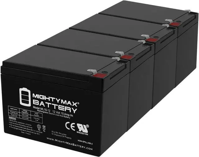 ML15-12 SLA is a 12V 15AH Sealed Lead Acid (SLA) rechargeable maintenance free battery, Pack of 4 - UL Certified