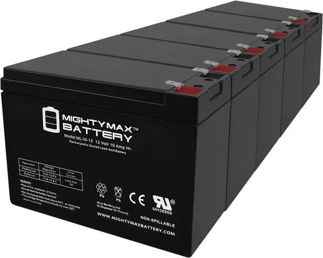 ML10-12 SLA is a 12V 10AH Sealed Lead Acid (SLA) rechargeable maintenance free battery, Pack of 5 - UL Certified